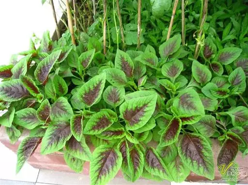 叶片边缘绿色,叶脉附近紫红色,耐热性较差, 质地软。有上海的尖叶红米苋及广州的尖叶花红等。