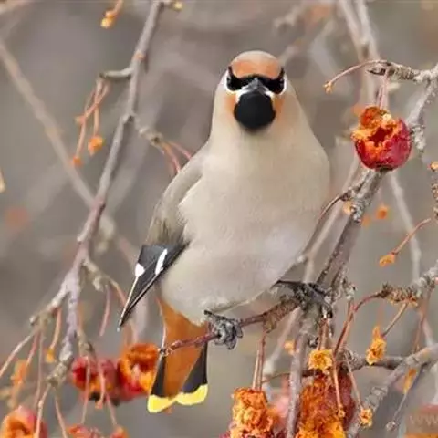 太平鸟属雀形目,太平鸟科的鸟类。太平鸟通体灰褐色,具羽冠;颏、喉黑色,尾羽先端黄色;虹膜暗红色;嘴…