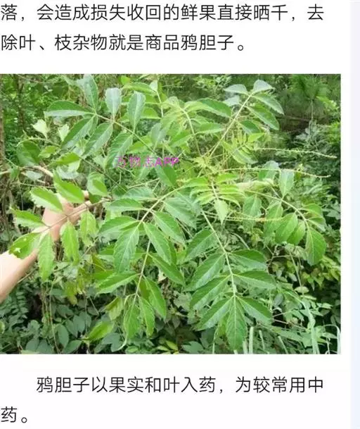 《南方主要有毒植物》:“鸦胆子,有毒部位:果壳和种子。中毒症状:成年人吃12粒有中毒危险。症状是恶心,呕吐,腹痛,腹泻,头昏,全身无力,呼吸慢或困难,昏睡,最后四肢麻痹。解救方法:洗胃;内服蛋清或牛奶及活性炭;内服或注射维生素B1;静脉滴注葡萄糖盐水及维生素丙。腹剧痛时给止痛剂;昏睡时给兴奋剂等对症治疗。广州草药医师介绍:先用甘草三钱煎水服或嚼烂吞下原汁,后吃红糖和冻白粥。”常绿灌木或小乔木,高1.5~3m,全株均被黄色柔色小枝具有黄白色皮孔。奇数羽状复叶互生,长20~40cm;小叶5~11,通常7,对生,卵状披针形,长4~11cm,宽2~4.5cm,先端渐尖,基部宽楔形,偏斜,边缘具三角形粗锯齿,上面疏被、下面密被伏柔毛,脉上尤密。聚伞状圆锥花序腋生,狭长,可达50cm,雄花序长过于叶,萼片4,卵形,长不及1mm,外面疏被淡黄色硬伏毛,边缘疏生腺体,花瓣4,长圆状披针形,外面有硬毛。边缘有腺体,雄蕊4,花盘发达,半球形;雌花序短于叶,萼片、花瓣同雄花,但稍大,雄蕊具不发育的花药,花盘杯状,4浅裂,心皮通常4,卵圆形,无毛,花柱反折,紧贴子房。核果椭圆形,紫红色转黑色,长约8mm,宽5~6mm,干时具凸起的网状皱纹,略偏斜。花期4~6月,果期8~10月。本植物的根(老鸦胆根)、叶(老鸦胆叶)亦供药用,另详专条。
