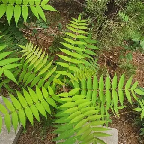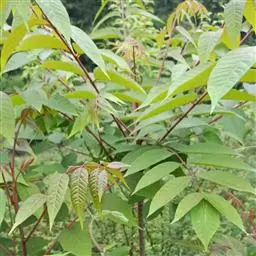 小叶3-15对,卵形或卵状披针形,长5-10(-13)厘米,先端渐尖,基部宽楔形或近圆,有粗齿,两面被柔毛,下面较密;小叶柄长4-8毫米。雄花序长15-25(-40)厘米,雌花序长约雄花序一半。