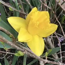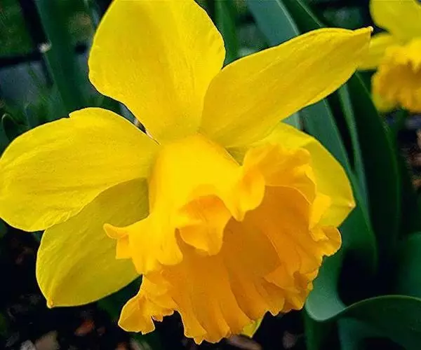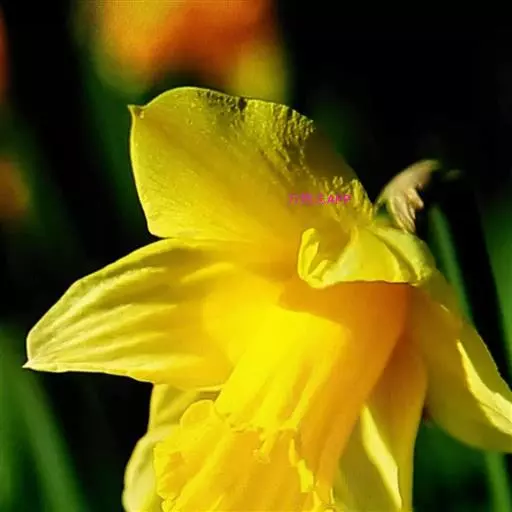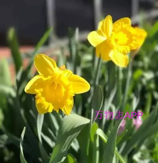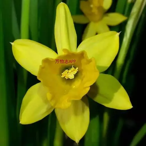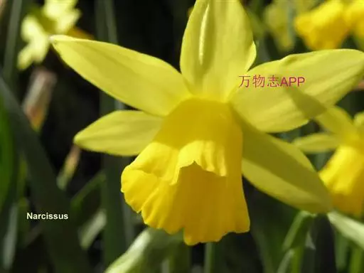 黄水仙(学名:Narcissus pseudonarcissus L.):又名洋水仙、喇叭水仙等,石蒜科多年生草本。鳞茎球形;叶直立向上,宽线形,钝头。花茎高约30厘米,顶端生花;佛焰苞状;花被管倒圆锥形,花被裂片长圆形,淡黄色;副花冠稍短于花被或近等长。花期春季。