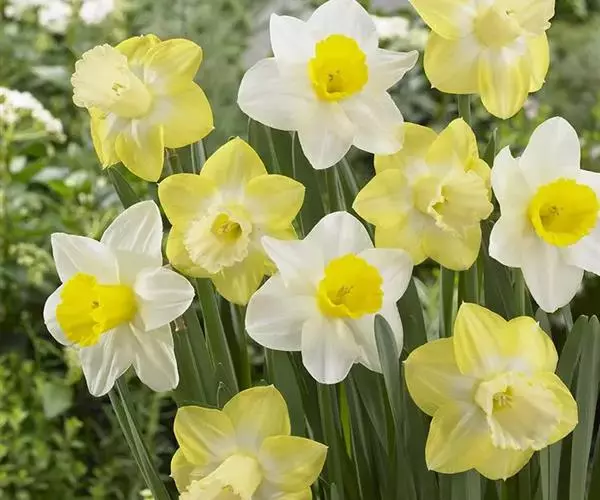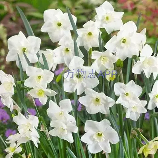 单瓣白花的有克拉奇福特、花汞,副冠橙色;天竺葵,副冠橙色,多头;酒杯,副冠黄色;轰动荷兰,副冠黄色;冰冬青,副冠黄色;约翰斯特劳斯,副冠橙红色;胡尼坦,副冠橙红色;朱尔斯维恩,副冠白色;拉斯维加斯,副冠黄色;胡德山,全白;白纸,全白,多头;爱因斯坦教授,副冠橙色;红山,副冠红色;莎乐美,副冠红色;托波利诺,副冠黄色,多头。
