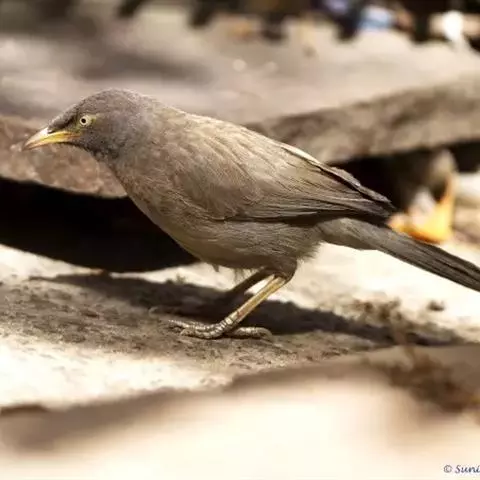 虹膜棕色或茶褐色,嘴褐色或黑色,下嘴基部黄色,脚暗褐色或铅灰色,爪黄色。