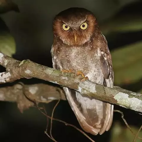 黄嘴角鸮:小型鸟类,体长18-21厘米。的茶黄褐色角鸮。眼黄色,嘴奶油色,特征为无明显的纵纹或横斑,…