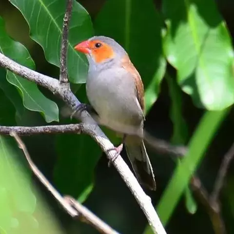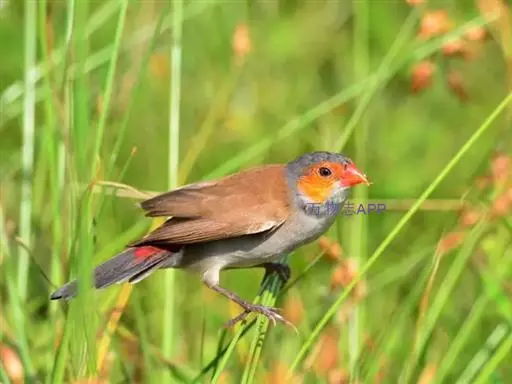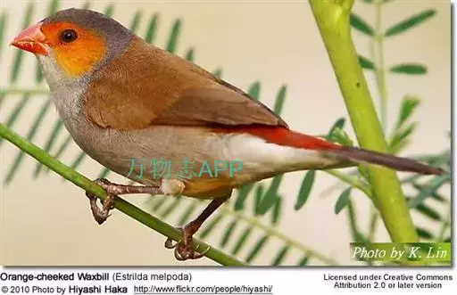 尾:尾部是橙颊梅花雀个体沟通的重要工具。雄鸟在向雌鸟求偶炫耀时,会前后轻弹其尾。