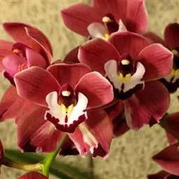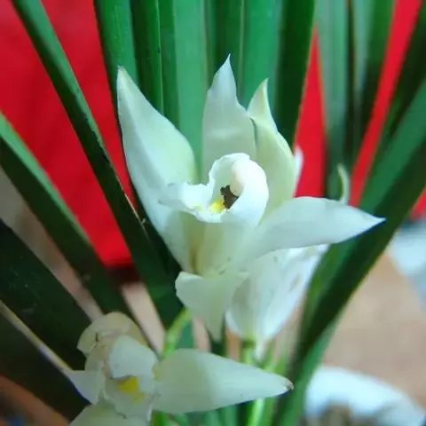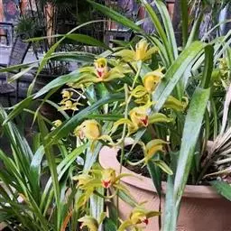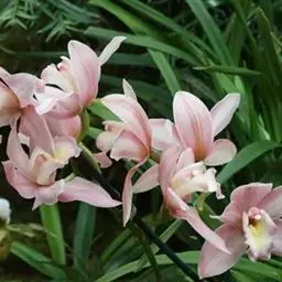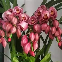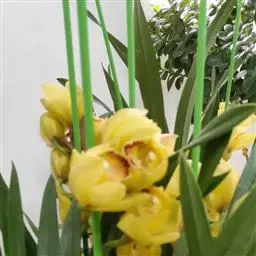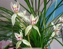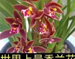 兰花(学名:Cymbidium ssp.):附生或地生草本,叶数枚至多枚,通常生于假鳞茎基部或下部节上,二列,带状或罕有倒披针形至狭椭圆形,基部一般有宽阔的鞘并围抱假鳞茎,有关节。总状花序具数花或多花,颜色有白、纯白、白绿、黄绿、淡黄、淡黄褐、黄、红、青、紫。