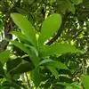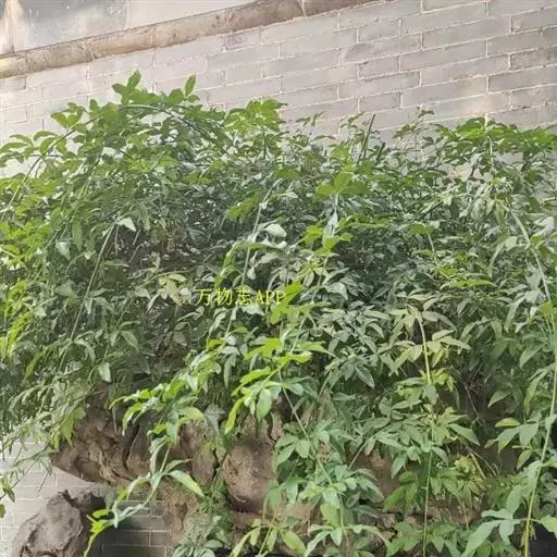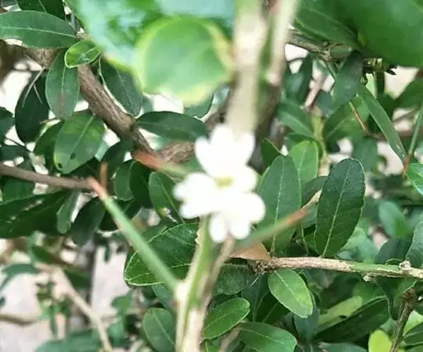 佛顶珠:灌木,叶波斜形或椭圆状波形,叶面明显呈“Ⅴ”形,内折深墨绿色,叶缘基部以上或1/3以上有粗齿,总梗发达,花黄白色,有微香,花瓣倒卵形。