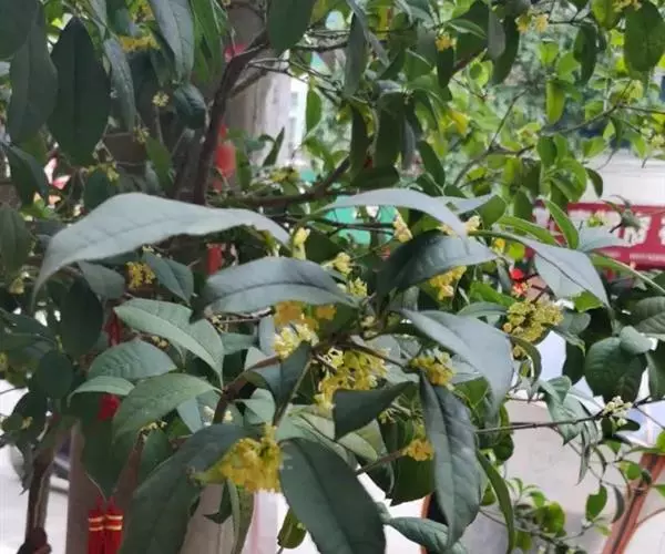 柳叶桂:小乔木或灌木状,树冠长圆形、圆球形,分枝较多。叶椭圆状披针形或长椭圆形,全缘。叶先端渐尖,稀先端有少数锯齿。9月中下旬至10月上旬开花,每芽有花5-7朵,花朵稀疏,花银白色至黄白色、淡黄色,浓香。