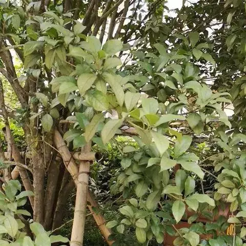 二、摘心、扭梢:摘心和扭梢主要针对正在迅速生长的新梢进行。摘除新梢先端的幼嫩部分,可以控制新梢生长高度,促进枝条老熟,刺激侧枝的分生。扭枝是将半木质化的新梢扭伤,通过损伤木质部的输导组织,削弱该枝条的生长势,并保留该枝条叶片的光合功能。摘心和扭梢用于新梢生长势的调控。桂花苗木基部分枝多,主干不明显的时候,选留一个位置着生好,生长相对比较强的新梢,保留不予处理,对所有其他嫩枝进行摘心或扭枝,则保留的新梢由于顶端优势得到加强,营养集中,高度迅速增加。如此反复操作2-3次,可以培养出粗壮的主干。主干生长过于迅速,会出现太长太细或者出现竞争枝时都可以通过摘心进行调节。