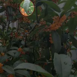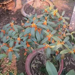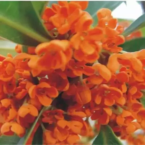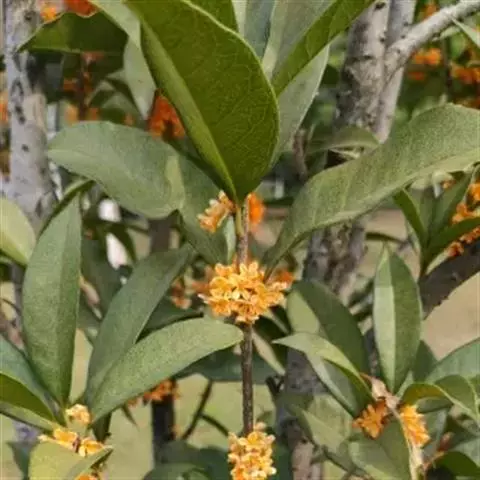 波叶金桂:叶椭圆形,边缘波状起伏,秋季可开花2-3次,着花紧密,有浓香,花冠金黄色,花瓣椭圆形。