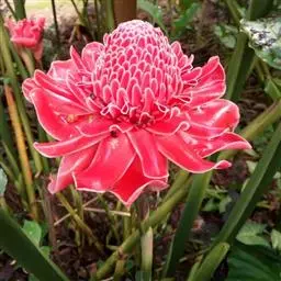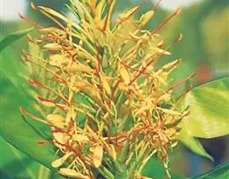 密苞山姜是姜科,山姜属多年生草本植物,株高可达1.5米。叶片椭圆状披针形,顶端渐尖,并具细尾尖,基…
