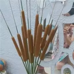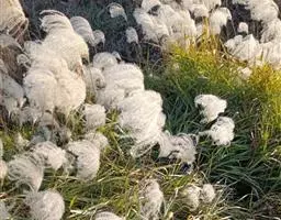香蒲 香蒲含纤维量高的叶来编制的草袋、草包、草席、坐垫、茶垫、提篮等手工编织品出口国外,能产生较好的经济效益。香蒲全草为良好的造纸原料,含纤维量为35%-60%,出麻率在38.3%以上;用碱煮法可把叶和叶鞘加工成人造棉;以7-8月收割为宜,9月份采集的鲜草,含水分81.78%、粗蛋白质3.16%、粗纤维4.06%;干燥全株含水10.20%、半纤维素16.6%、纤维素56.2%。脱胶后的纤维可织麻袋和搓绳,其拉力与质量均超过稻草绳;成熟的雌花序称蒲棒,可蘸油或不蘸油用以照明;雌花序上的毛称蒲绒,几乎为纯纤维,常用作枕絮。