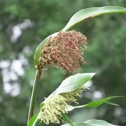 小坚果椭圆形至长椭圆形;果皮具长形褐色斑点。种子褐色,微弯。花果期5-8月。2n=60。