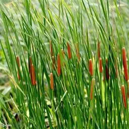 香蒲 香蒲叶绿穗奇常用于点缀园林水池、湖畔,构筑水景,宜做花境、水景背景材料,也可盆栽布置庭院,因为香蒲一般成丛、成片生长在潮湿多水环境,所以,通常以植物配景材料运用在水体景观设计中。香蒲与其它水生植物按照它们的观赏功能和生态功能进行合理搭配设计,能充分创造出一个优美的水生自然群落景观。另外,香蒲与其它一些野生水生植物还可用在模拟大自然的溪涧、喷泉、跌水、瀑布等园林水景造景中,使景观野趣横生,别有风味