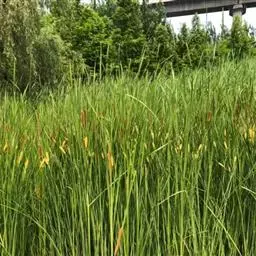 香蒲的园林应用中,其对湿地系统生态功能的保护也是一个很重要的方面。由于香蒲植物根系发达,与水葱搭配有利于净化水质,此外,香蒲还可以控制水土流失,促进土壤的发育和熟化,提高土壤中有机质及N、P、K等的含量,从而提高了土壤肥力。随着越来越重视湿地的保护和发展,香蒲以其野生水生植物这一特点广泛应用于各地的城市湿地公园中,能为各个城市获得良好的生态保护效应,也能为其它生物提供栖息地,丰富整个湿地公园的生物多样性。