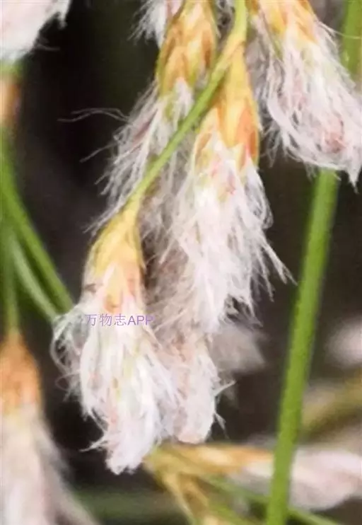 丛毛羊胡子草(学名:Eriophorum comosum,Wall.):为莎草科多年生草本植物,高约14-80厘米。其种子成熟后分裂出状如棉絮的白色细丝,可以随风飞散,以利于传播种子。叶鲜绿,茎仅于近基部具叶;小穗有两性花极多数,数个排成伞房花序或为复伞形花序;鳞片覆瓦状排列于小穗轴的周围;下位毛状体分裂为多数、白色的细丝,状如绵絮,结果时伸出鳞片外甚长,能随风飞散,故极易识别。此毛可为枕褥的填充物;雄蕊3-1;花柱长,脱落;柱头3(2-4);坚果三角形,平滑。