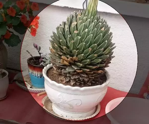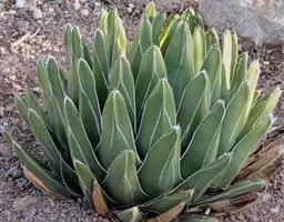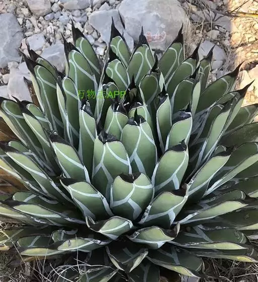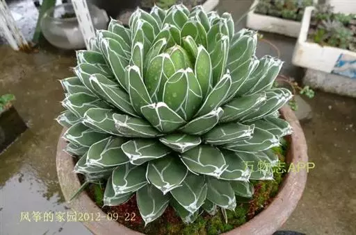 肉质草本。植株无茎,肉质叶呈莲座状排列,株幅可达40厘米;大型植株叶片可达100多枚,叶三角锥形,长10~15厘米,宽约5厘米,先端细,腹面扁平,背面圆形微呈龙骨状凸起;叶绿色,有不规则的白色线条,叶缘及叶背的龙骨凸上均有白色角质,叶顶端有0.3~0.5厘米坚硬的黑刺。植株生长30年左右才能开花,松散的穗状花序高达4米,小花淡绿色,长约5厘米;花后结籽,植株则枯萎死亡。其种名"victoriae-reginae"是纪念维多利亚女王,国外也称之为维多利亚龙舌兰、女王龙舌兰、皇后龙舌兰。