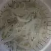 3.冬笋、冬菇。火腿均切成小象眼片。鸡蛋清放汤碗内,用筷子打成蛋泡,加上干淀粉搅匀待用。