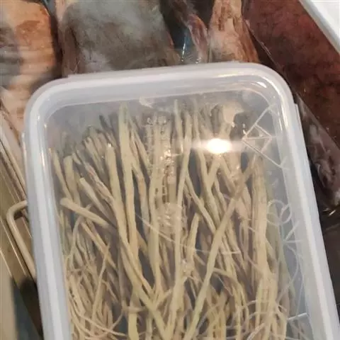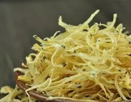 3.坐锅点火倒油,油温6成热时,放入竹荪鱼,炸至金黄色时捞出,食用时蘸椒盐即可。