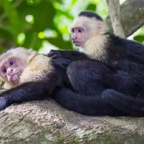 蛛猴属:共有7种。头体长约35-66厘米。头又圆又小,四肢细长,手没有拇指。…