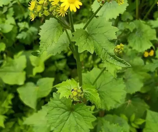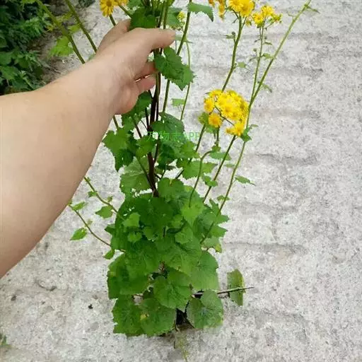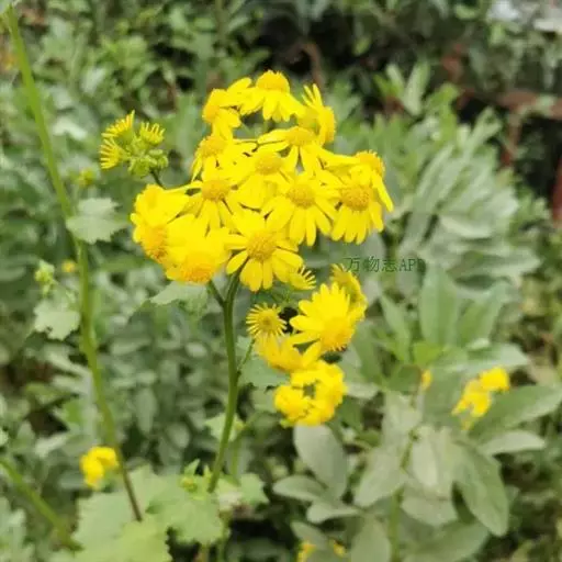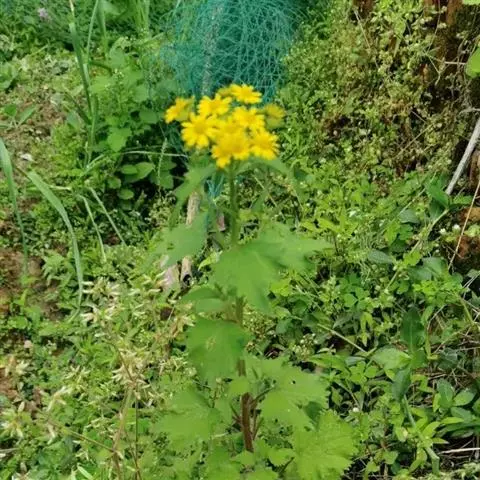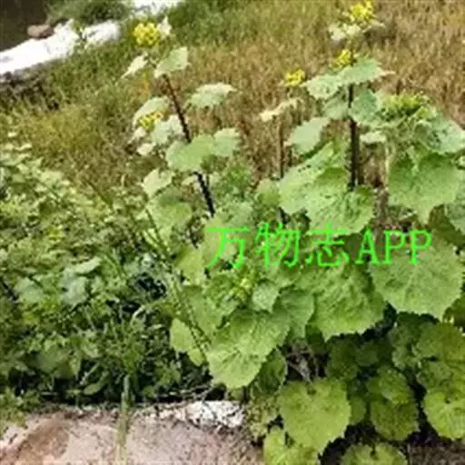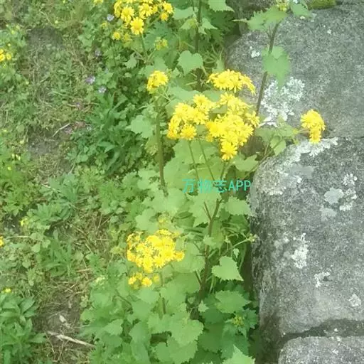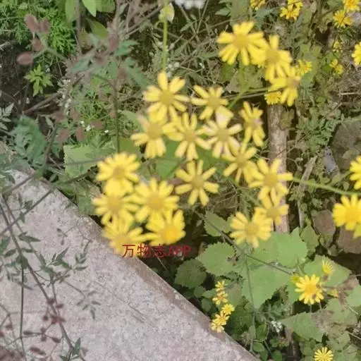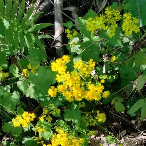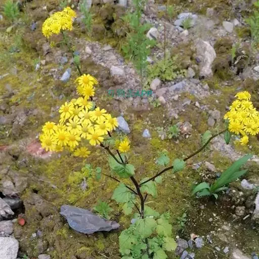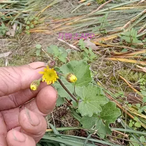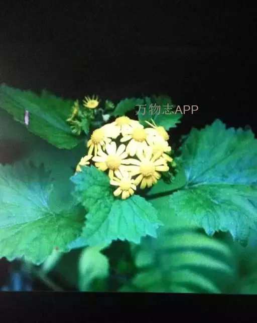 一年生或二年生草本,高30-80厘米。茎直立,单一或稍有分枝,具白色软毛或近乎光滑。基生叶丛生,花后脱落,柄长3-6厘米,基部具鞘;叶片肾圆形,长约2.5厘米,宽约3厘米,边缘具不整齐的三角形齿,上面稍有细毛,下面有白色蛛丝毛密生;中部叶有短柄,叶片肾圆形至广卵状心形,长3.5-4厘米,宽4-4.5厘米,先端短尖,被毛同基生叶;上部叶宽卵形,较小。春、夏季开花,头状花序小而多数,具细梗,排成伞房状;总苞钟形,基部无小苞,总苞片条状披针形,边缘膜质;缘花舌状,1层,舌片橘黄色,椭圆形,先端全缘或3齿裂;中央管状花多数,先端5裂。瘦果圆筒形,具纵棱,稍有细毛;冠毛白色,长约2-3毫米。