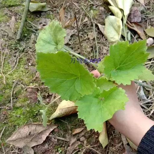 本品长20-80cm,茎圆柱形,具纵条纹,下部被蛛丝状绵毛,上部近无毛,上部多分枝。表面灰绿色。断面不整齐,近白色。叶片草质或近膜质,皱曲或破碎,完整者平展后为心状圆形或阔卵状心形,叶面淡黄绿色,近无毛,背面灰绿色,密被白色蛛丝状绵毛;叶柄长1.5-6cm。茎、枝顶端有头状花序组成的伞房状花序,总花序梗纤细,长1-2.5cm;总苞宽钟形,长3-4mm;花黄色,舌状花1层,舌片顶端全缘或3齿裂;管状花多数,长5-6mm。偶见倒卵状圆柱形瘦果,长约1mm,具白色长冠毛。气微,味苦。以茎、枝多,叶完整,色绿者为佳。