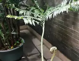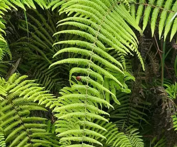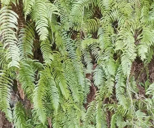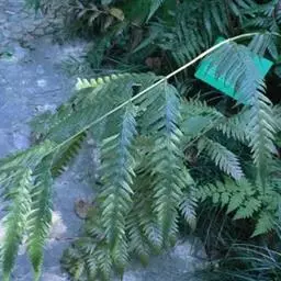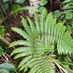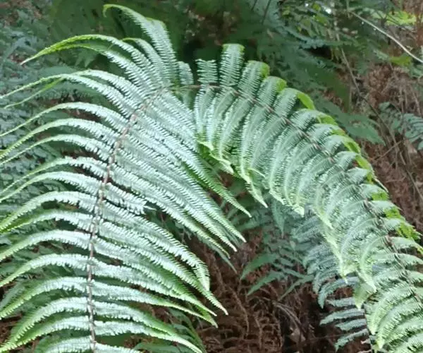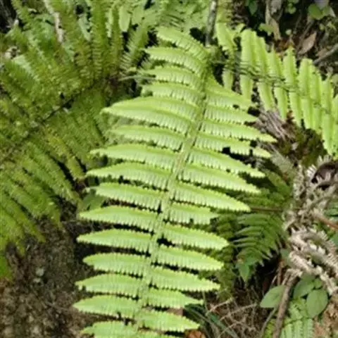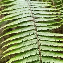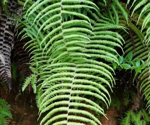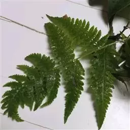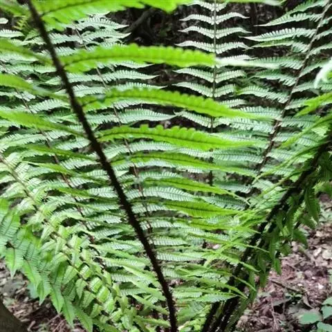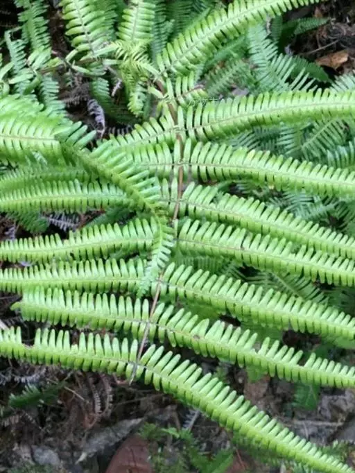 里白属于蕨类植物,植株高达1.5m或更高。根状茎横走,被鳞片。叶柄长约60cm;叶柄有1个密被棕色鳞片的大顶芽,不断发育形成新羽片;2回羽裂,1回羽片对生,小羽 片互生,平展,与羽轴几成直角。叶纸质,上面绿色,下面灰白色。