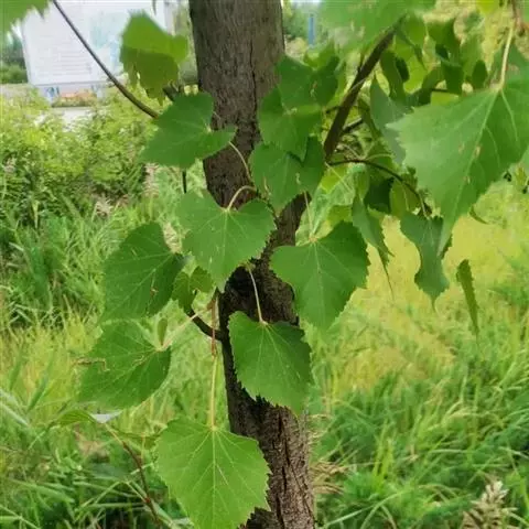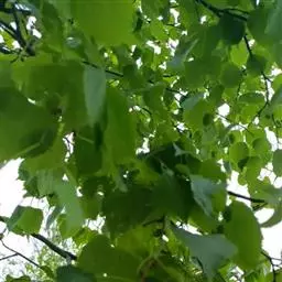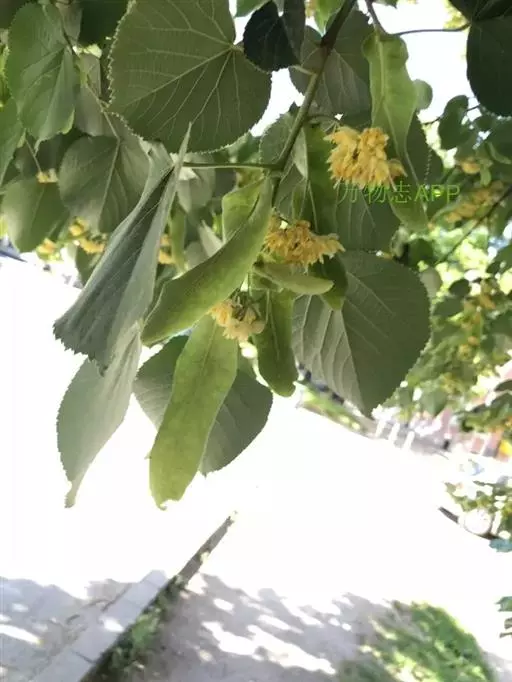 辽椴 高20米,直径50厘米,树皮暗灰色;嫩枝被灰白色星状茸毛,顶芽有茸毛。叶卵圆形,长8-10厘米,宽7-9厘米,先端短尖,基部斜心形或截形,上面无毛,下面密被灰色星状茸毛,侧脉5-7对,边缘有三角形锯齿,齿刻相隔4-7毫米,锯齿长1.5-5毫米;叶柄长2-5厘米,圆柱形,较粗大,初时有茸毛,很快变秃净。