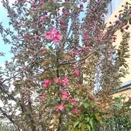 红宝石海棠:从美国引种,是集叶、花、果、枝、树形同观共赏的绿化、彩化树种。该树种以其优美的树形、丰…