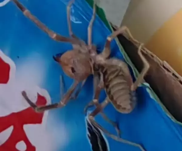 这只母避日蛛(毛爪避日蛛)看起来彷佛从小孩的噩梦里爬出来的怪物,充满了攻击性。避日蛛行动快似闪电。虽然身长很少超过五厘米,但避日蛛能轻易将蚱蜢咬成两半。这种避日蛛学名叫solifgids,生活在非洲、亚洲、欧洲与美洲的沙漠地区。
