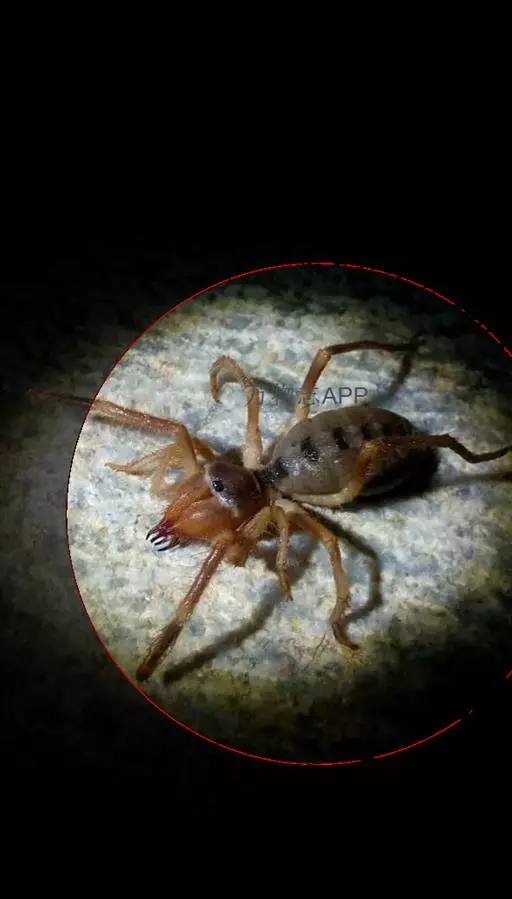 粗大的巨螯、近乎贪婪的食欲和竞跑选手般的速度,这一切都在显示,极富攻击性的沙漠居民天生就是一个杀手。在太阳初升的以色列沙漠,一只奇异的小动物凝视着我,然后飞快地溜 避日蛛 回自己的洞窟里。圆溜溜的眼睛,毛茸茸的肢体,突出的手臂一般的巨螯,这一切都像是噩梦中的场景。虽然避日蛛并没有毒,但它们咬在人身上能让人感到强烈的疼痛感,而咬在它们的猎物身上则足以致命。这种狂热的食肉动物会袭击一些昆虫、啮齿动物、蜥蜴、蛇和小鸟,用长达身体三分之一的巨螯捕获它们。就身体比例而言,这张“大嘴”在动物界是数一数二的。它们挥动着仿佛结合了钳子与刀刃的螯,像拉锯一样将猎物嚼成碎末,然后分泌出一种酶将它们溶成液体,再吸进胃里。