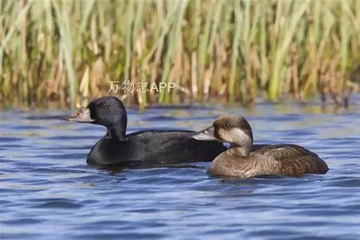 黑海番鸭 黑海番鸭雄鸟头、颈和上下体均黑色,上体微具光泽。翅下覆羽黑褐色和银灰色,尾黑色,长而尖。 雌鸟头顶和后颈暗褐色,头侧、颈侧、颏和喉灰白色,颈侧缀有细小淡褐色斑点,上体暗灰褐色,具灰白色端斑,胸侧和两胁也具灰白色端斑。胸和腹淡灰褐色,腹具少许不甚明显的灰白色斑纹。腋羽、肛周及尾下覆羽暗褐色;翼下覆羽暗灰褐色而具灰白色狭缘。