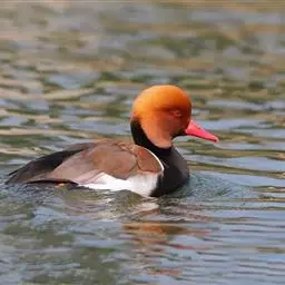 赤嘴潜鸭俗称大红头,是大型鸭类,个体比绿头鸭小,体长45-55厘米,体重1千克左右。雄鸟头浓栗色,…
