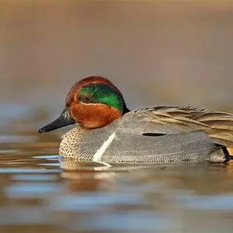 绿翅鸭是小型鸭类,体长37厘米,体重约0.5千克。嘴脚均为黑色。雄鸟头至颈部深栗色,…