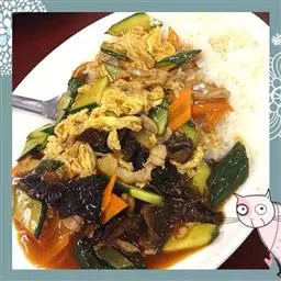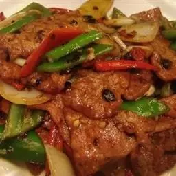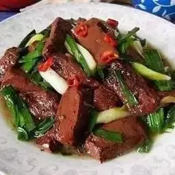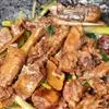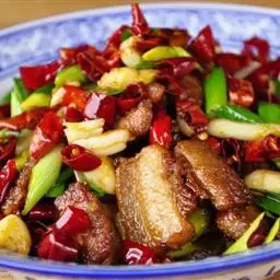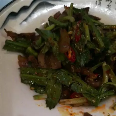 14.把煎好的猪肉片放入翻炒会,最后撒上少许鸡精即可出锅。