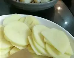 3.猪肉清洗好后,切片或切条,随自己喜欢。