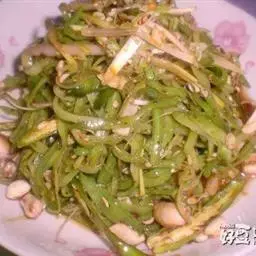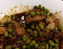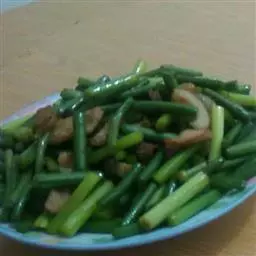 2、豆角200克、猪肉150克、姜丝、食盐、五香粉、鸡精、麻油各少许。