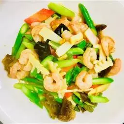 7、翻炒两分钟,放入一小碗的清水焖几分钟,至到水干后,将五花肉放进去煸炒1分钟即可。