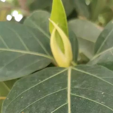三角榕为常绿乔木或小乔木。叶片近三角形,薄肉质,全缘,长4~6厘米,宽3~5厘米,浓绿色。