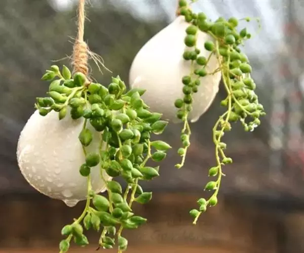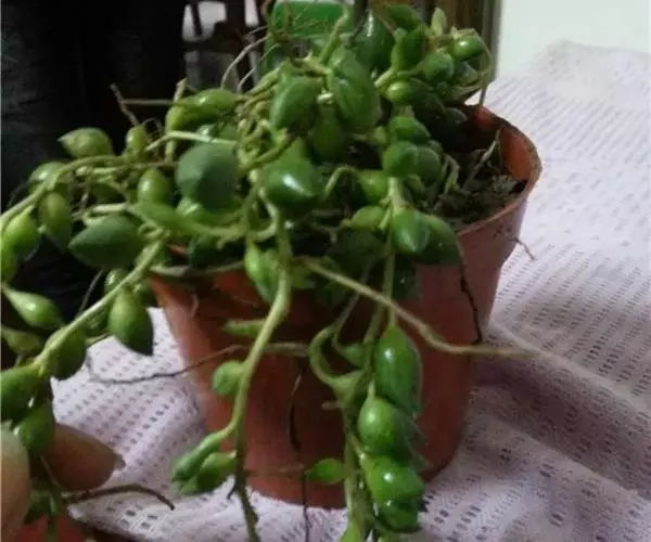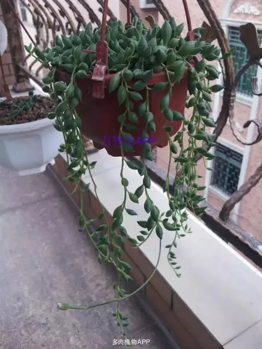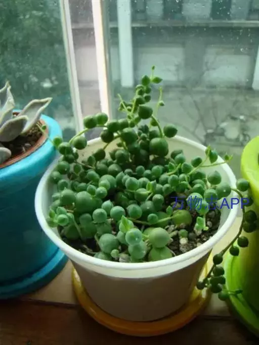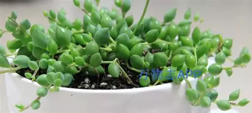 珍珠吊兰叶形夜色较美,呈匍匐生长状,可悬挂呈垂吊状,具有很高的观赏价值,也是人气较旺盛的多肉植物品种之一。