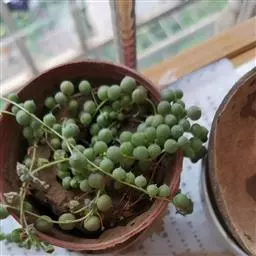 情人泪也叫佛珠吊兰,佛珠吊兰的学名叫翡翠珠,菊科千里光属多年生常绿匍匐生肉质草本植物。佛珠吊兰原产…