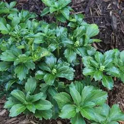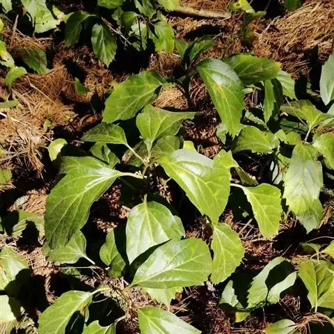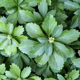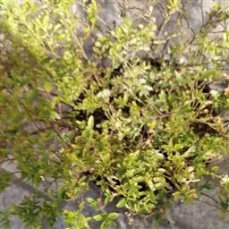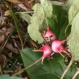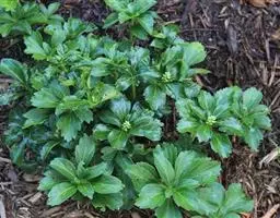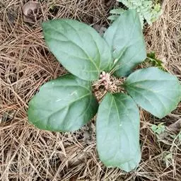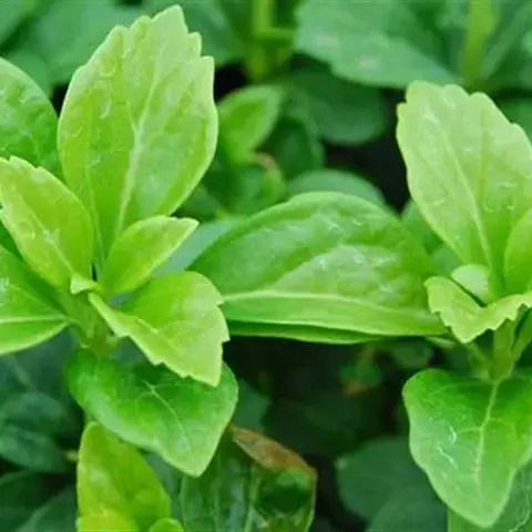 板凳果常绿亚灌木,铺地生长。株高20cm,冠径25cm。每个茎顶端生3~6片叶,叶卵形,边缘有锯齿,…