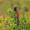紫金鹃是一种羽色艳丽的小形杜鹃,体长约17厘米。雄鸟头、颈、胸和上体辉紫色,腹白色,…