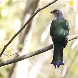 大杜鹃:是普通杜鹃的中国亚种。体长约320毫米,翅长约210毫米。雄鸟上体纯暗灰色;两翅暗褐,翅缘…