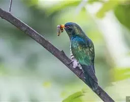 翠金鹃体长约17厘米,雄鸟上体辉绿色,头至背缀有很多棕栗色,…