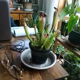 在栽培用盆方面,由于瓶子草需要有少许水分泡浸会生长更好,应选择一个半腰水的花盆栽植较好。这类盆具在市场上较少,自己动手制造,方法是在普通的素烧红砖盆或塑料盆上套入一个水仙盆即可,关键是水仙套盆应处于栽植盆的上半部,亦即“腰部”,以便浇水后漏出的水浸于栽植盆的齐腰处。此外,瓶子草盆栽一般以吊盆或塑料盆栽植,购回后为其选一个腰水水碟,对口后栽培会十分有利。