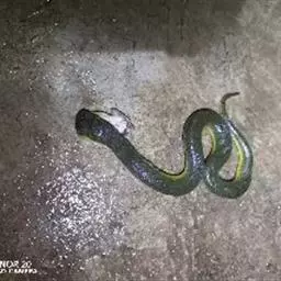 红脖颈槽蛇:游蛇科、颈槽蛇属的爬行动物。体型中等大小,全长约77-95厘米。头背草绿色,上唇鳞色稍浅,…
