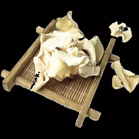 晴天上午摆片干晒,干晒时要随时翻动菌片,使菌片均匀接受阳光照射,在太阳落山前收回摊放在室内。菌片不能在室外过夜,粘附露水会导致菌片变黑,也不允许晒至中途遭受雨淋,最好在当天晒干。