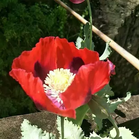 罂粟是一年生草本。茎高30-80厘米,分枝,有伸展的糙毛。叶互生,羽状深裂,裂片披针形或条状披针形,两面有糙毛。花蕾卵球形,有长梗,未开放时下垂;萼片绿色,花开后即脱落;花瓣4,紫红色,种植罂粟有多个花型和花色。基部常具深紫色斑,宽倒卵形或近圆形,花药黄色;雌蕊倒卵球形,柱头辐射状。花果期3-11月。