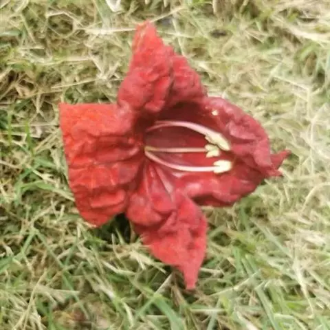 蒴果球形或长圆状椭圆形,长4-7厘米,直径4-5厘米,无毛,成熟时褐色。种子多数,黑色或深灰色,表面呈蜂窝状。花果期3-11月。